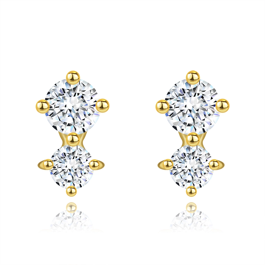 Zlaté visací náušnice 14K s čirými zirkony v řadě