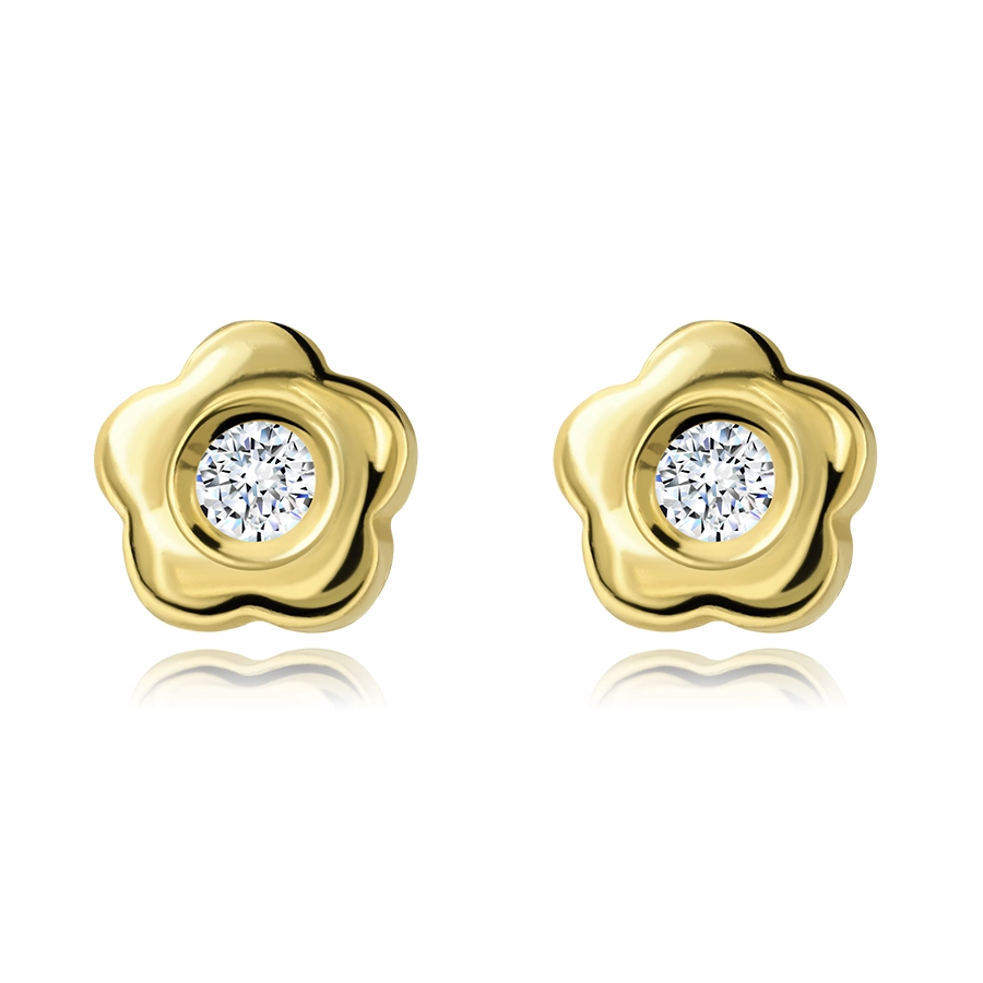 Zlaté náušnice 14K šesticípá hvězda s kubickou zirkonovou květinou