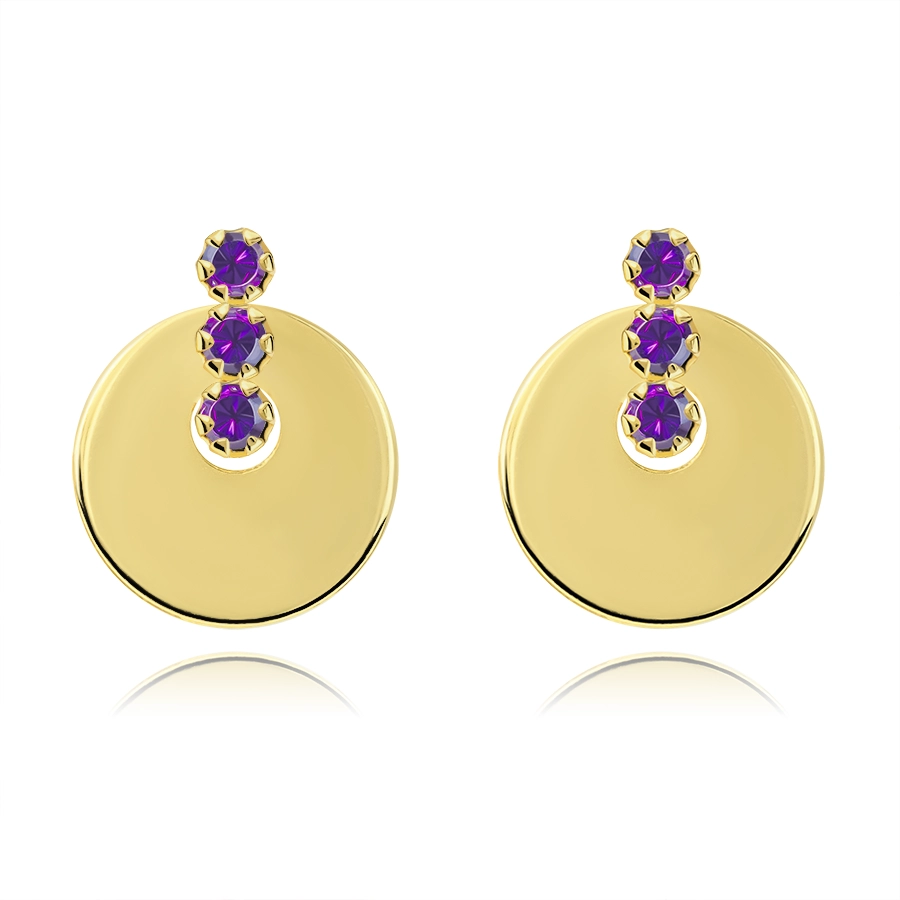 Náušnice ze 14K zlata s hladkým kruhem a fialovými zirkony