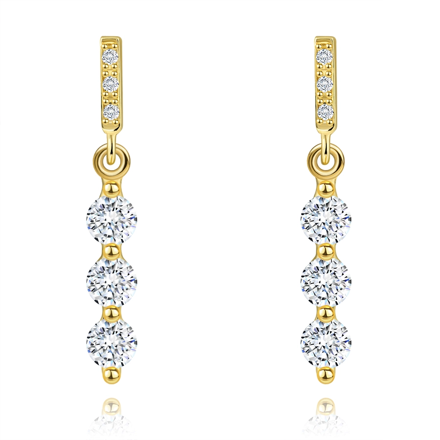 Zlaté visací náušnice 14K s čirými zirkony v řadě