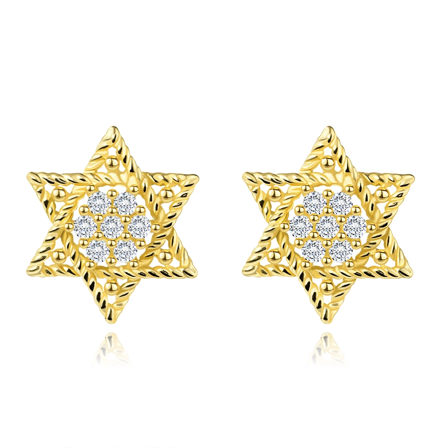 Zlaté náušnice 14K šesticípá hvězda s kubickou zirkonovou květinou