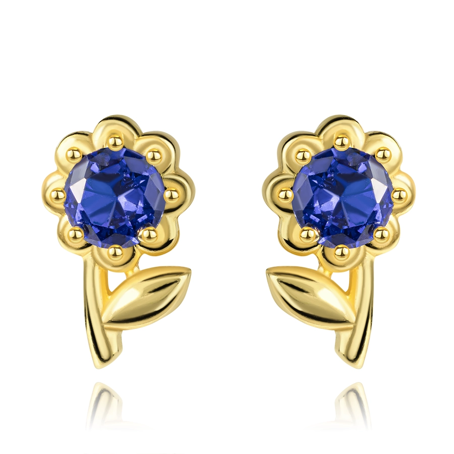 Náušnice ze 14karátového zlata ve tvaru květu s tmavě modrými zirkony